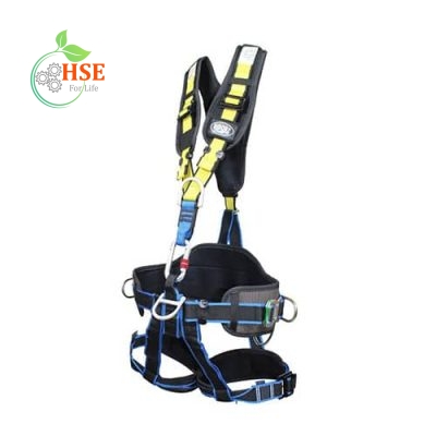 کمربند ایمنی کار در ارتفاع تمام بدن که همچون یک لباس دور شونه و روی ران و همچنین دور کمر افراد را گرفته و از سقوط افراد جلوگیری میکند